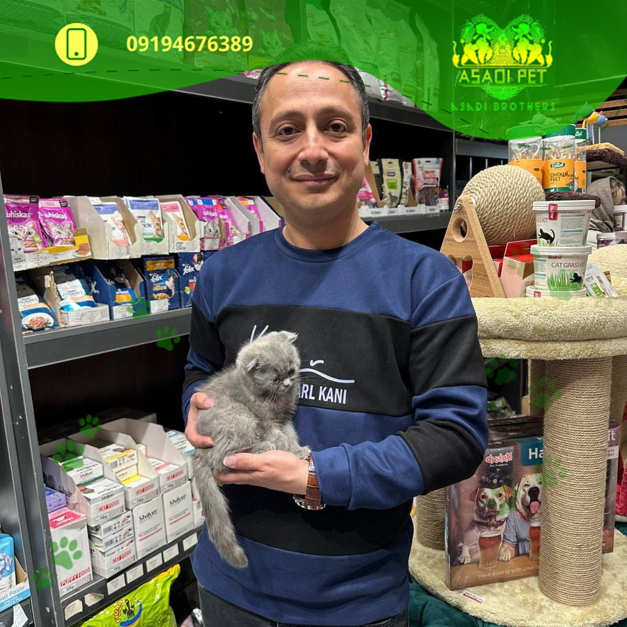 بچه گربه اسکاتیش فولد بلو دو ماهه اصیل فروخته شده مشتری عزیزمون از شهر قزوین به خاطر ویژگی های منحصر به فردش از جمله گوش های خمیده و رنگ خاص آبی، یکی از جذاب ترین و دوست داشتنی ترین گربه هایی است که می توانید پیدا کنید. گوش های خمیده این گربه کوچک نه تنها ظاهر بامزه ای به او می بخشند بلکه او را از دیگر نژادها متمایز می کنند. رنگ آبی پشم نرم و مخملی او نیز ظاهری خاص و زیبا به او می دهد. بچه گربه اسکاتیش فولد بلو دو ماهه اصیل، به دلیل طبیعت آرام و مهربانش، به عنوان یک حیوان خانگی فوق العاده شناخته می شود. او بسیار بازیگوش و کنجکاو است و دوست دارد وقت خود را در کنار صاحبش سپری کند. این گربه کوچک با کودکان و دیگر حیوانات خانگی سازگاری خوبی دارد و به راحتی با محیط جدید خو می گیرد.